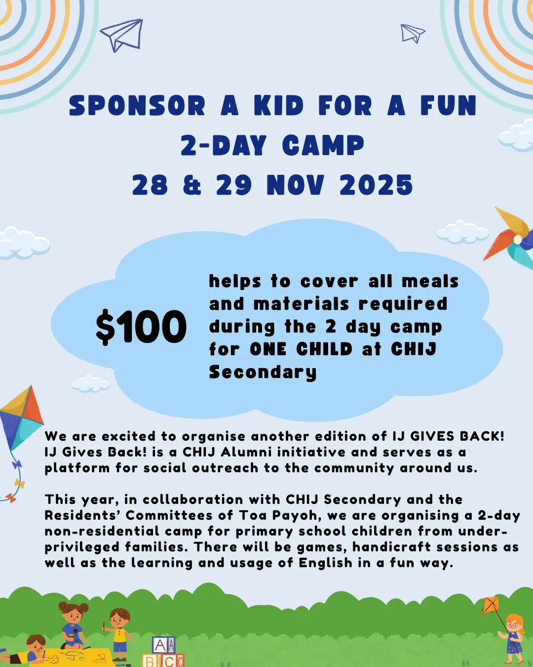 IJ Gives Back! is a CHIJ Alumni initiative and serves as a platform for social outreach to the community around us.